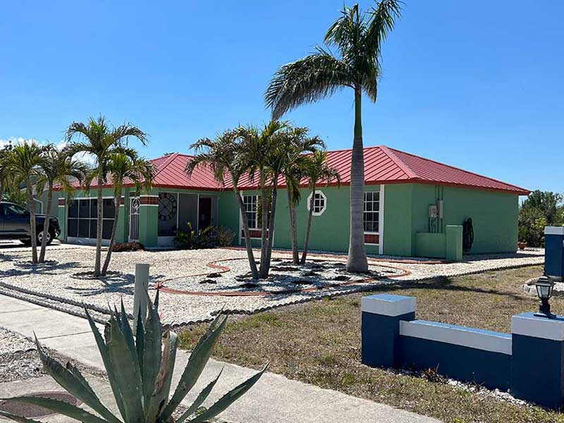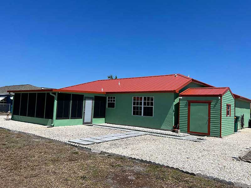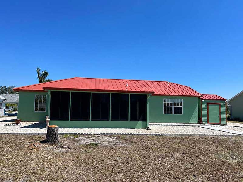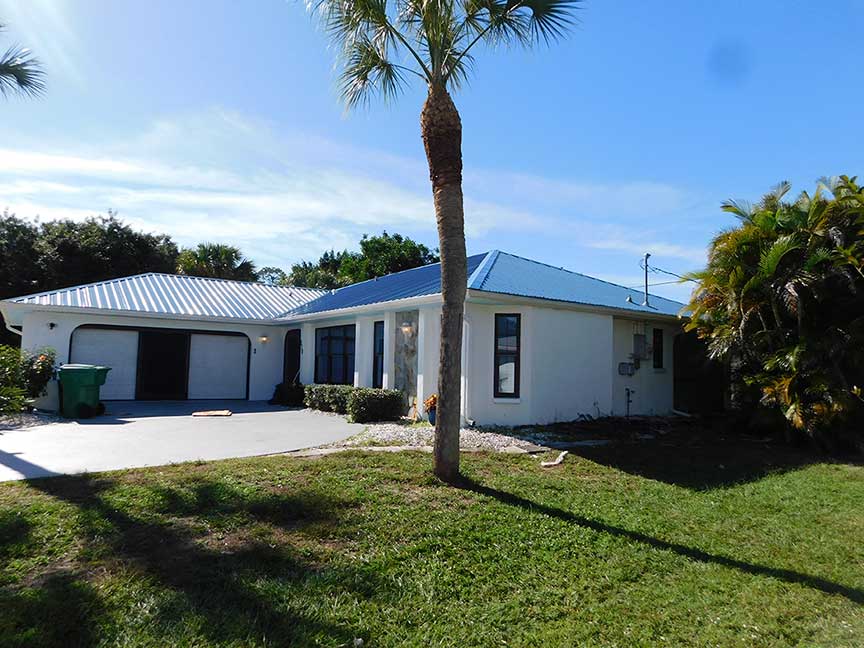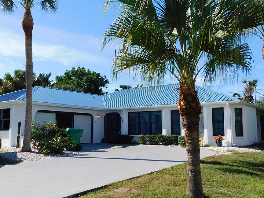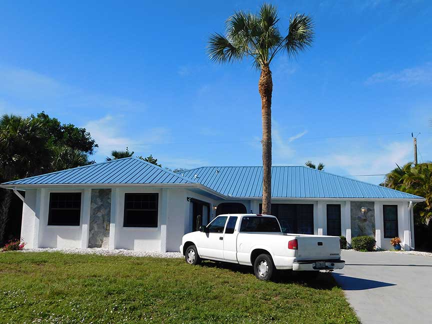 This home in Port Charlotte was roofed with a 26 gauge R Panel Tough Rib Metal roof with exposed fasteners. One of the advantages of using R Panel is that it is one of the most cost-effective metal panels and comes in a wide range of designs and colors. R-Panel is a great solution if you are looking for a lower cost, sturdy metal roof.